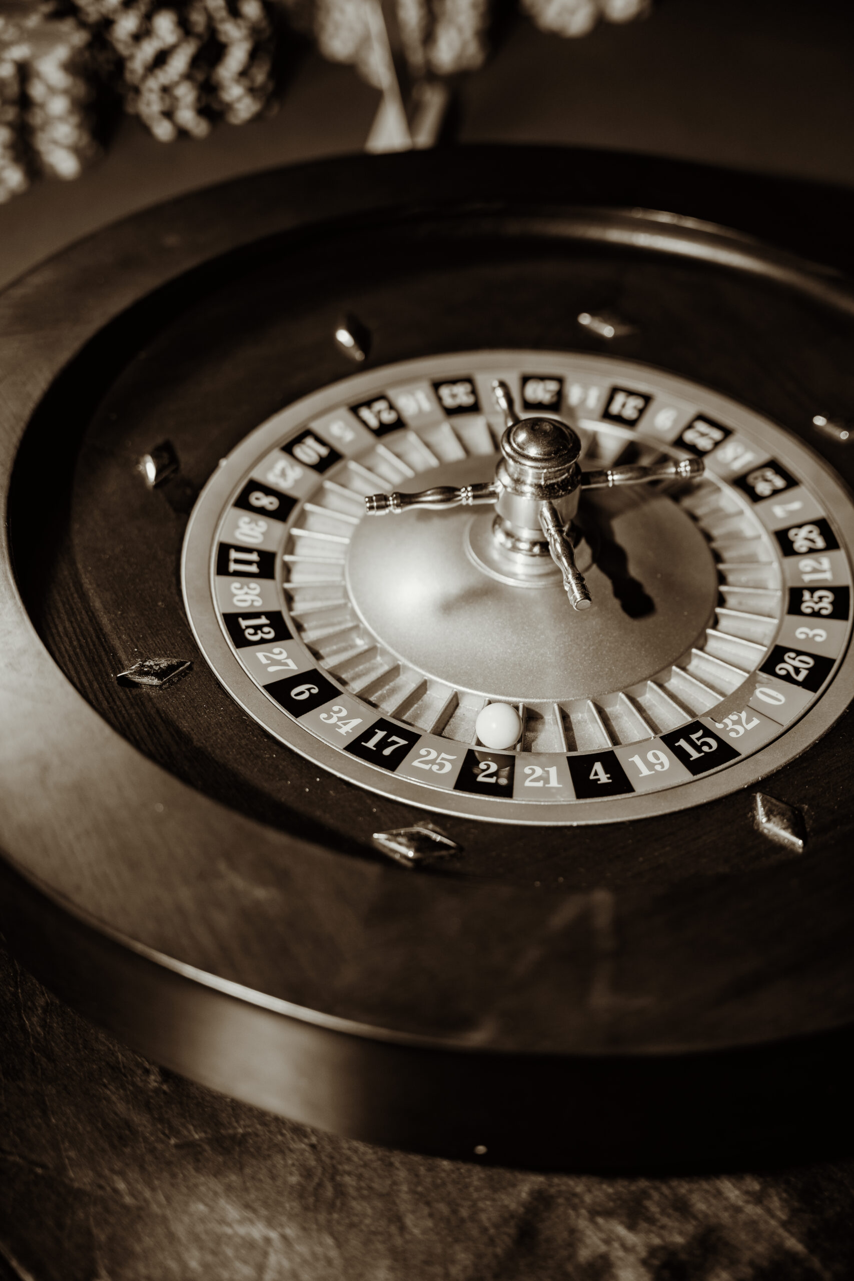 Jak na prawdziwe przyjęcie u Gatsby’ego przystało, nuda nie miała tu wstępu. Kasyno przyciągało gości niemal od pierwszych chwil, stając się jednym z centralnych punktów wieczoru. Eleganckie stoły, charakterystyczne rekwizyty oraz klimat lekkiego ryzyka sprawiały, że uczestnicy z zaangażowaniem wchodzili w role graczy, choć stawką była przede wszystkim dobra zabawa i emocje.